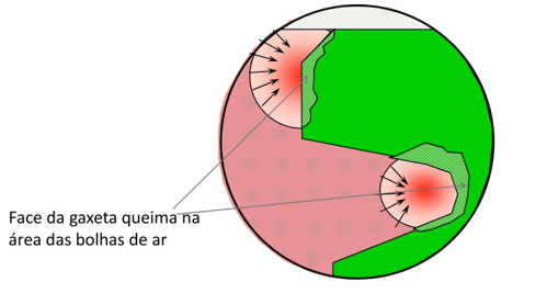 O que acontece é quando ocorre a explosão, a gaxeta queima e derrete.