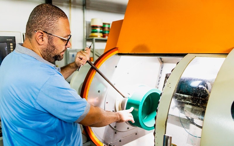 - Eficiência de vedação: As vedações usinadas são projetadas para garantir um ajuste preciso entre as superfícies que precisam ser seladas, minimizando ou eliminando vazamentos indesejados de fluidos (líquidos ou gases) ou a entrada de contaminantes no sistema. Essa eficiência de vedação é fundamental para o bom funcionamento de diversos equipamentos, evitando perdas de fluidos, desperdícios, e protegendo componentes internos de danos.