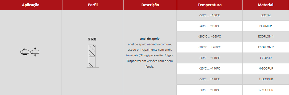 anel de apoio utilizado como anel anti-extrusão, quando aplicado com anel tórico (O’ring).